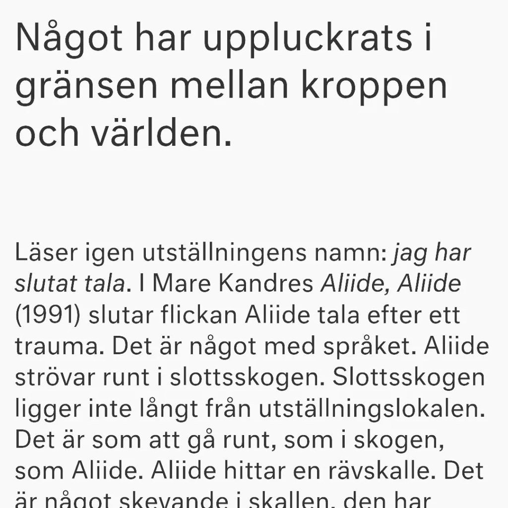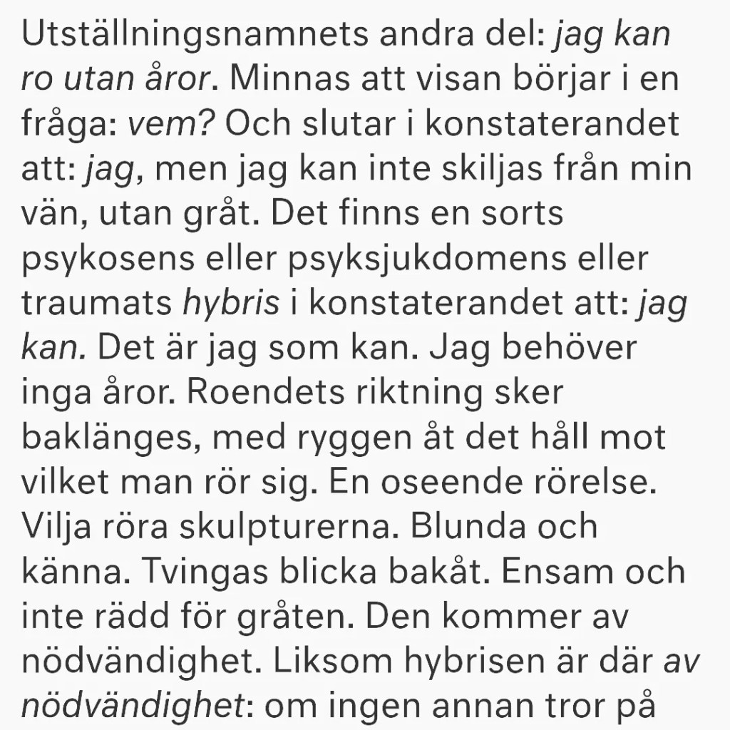 Utställning: Jag har slutat tala. Jag kan ro utan åror