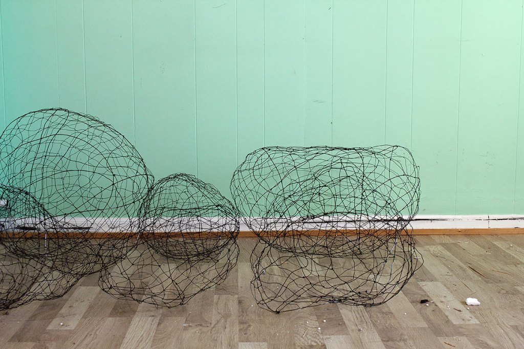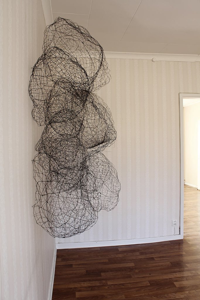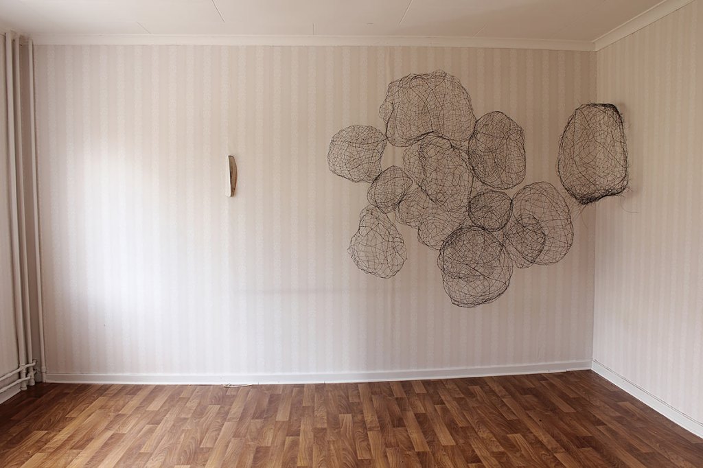 Därefter fanns ingenting Titel: Därefter fanns ingenting. Material: Ståltråd. Mått: Varierande mått. År: 2013.