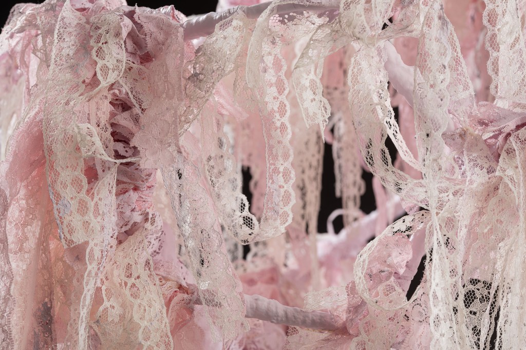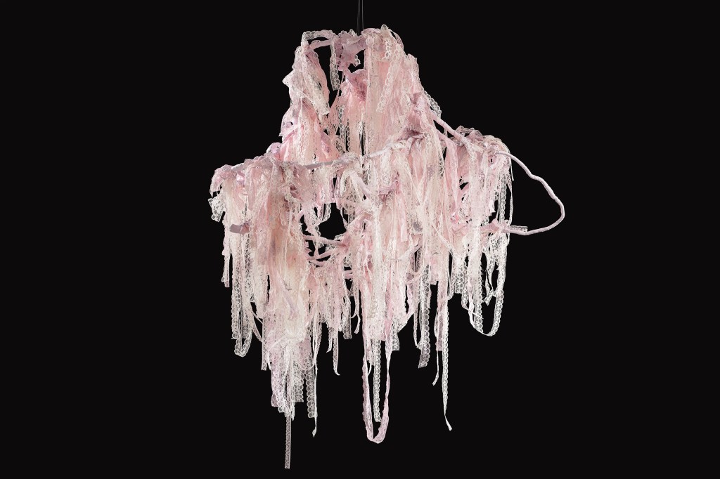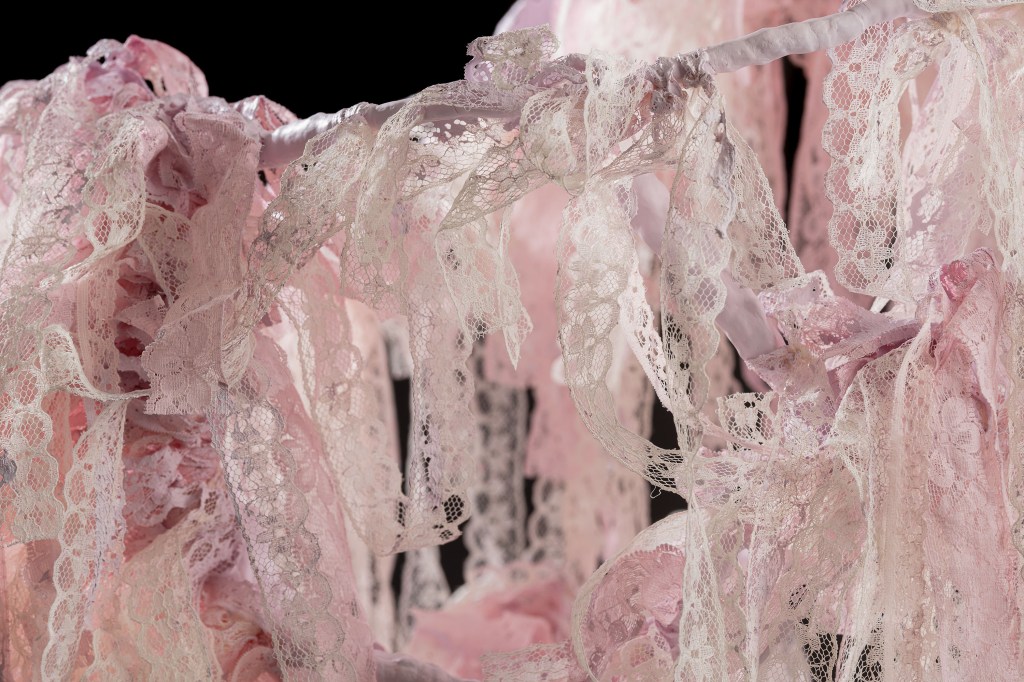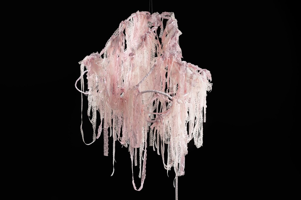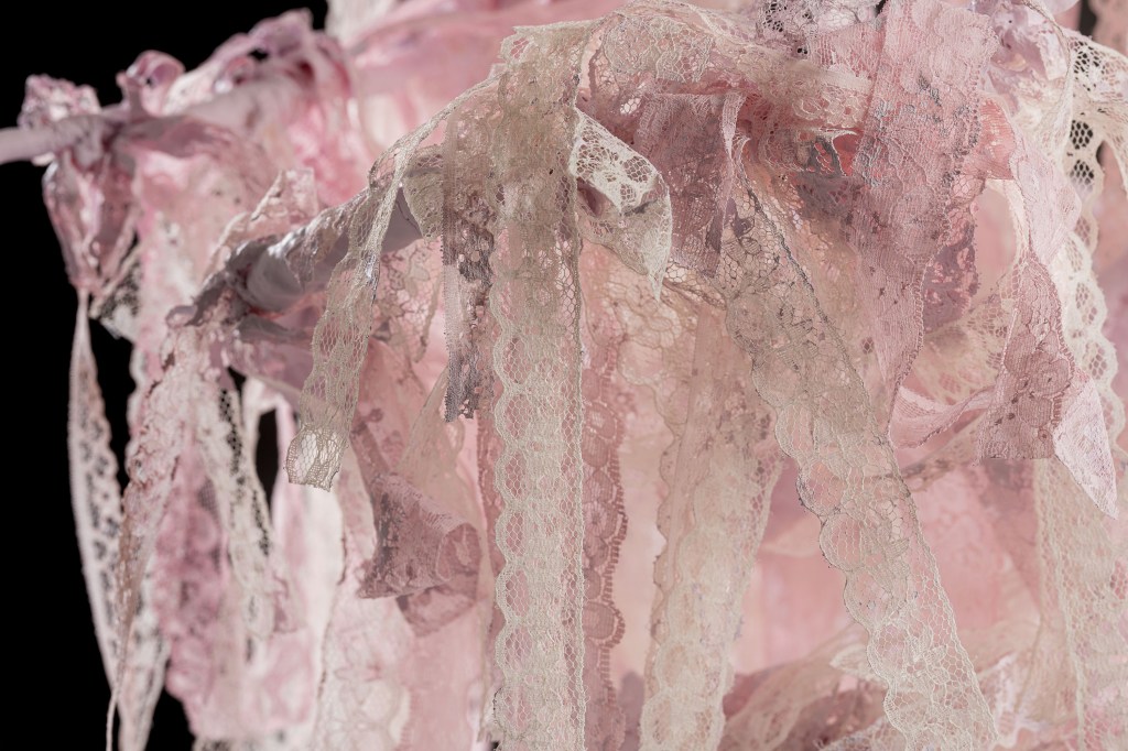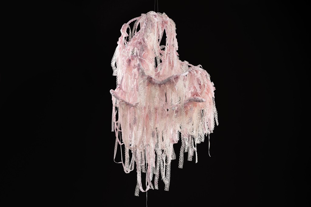 Material: Ståltråd, gips, lera, textil, färg och spets.