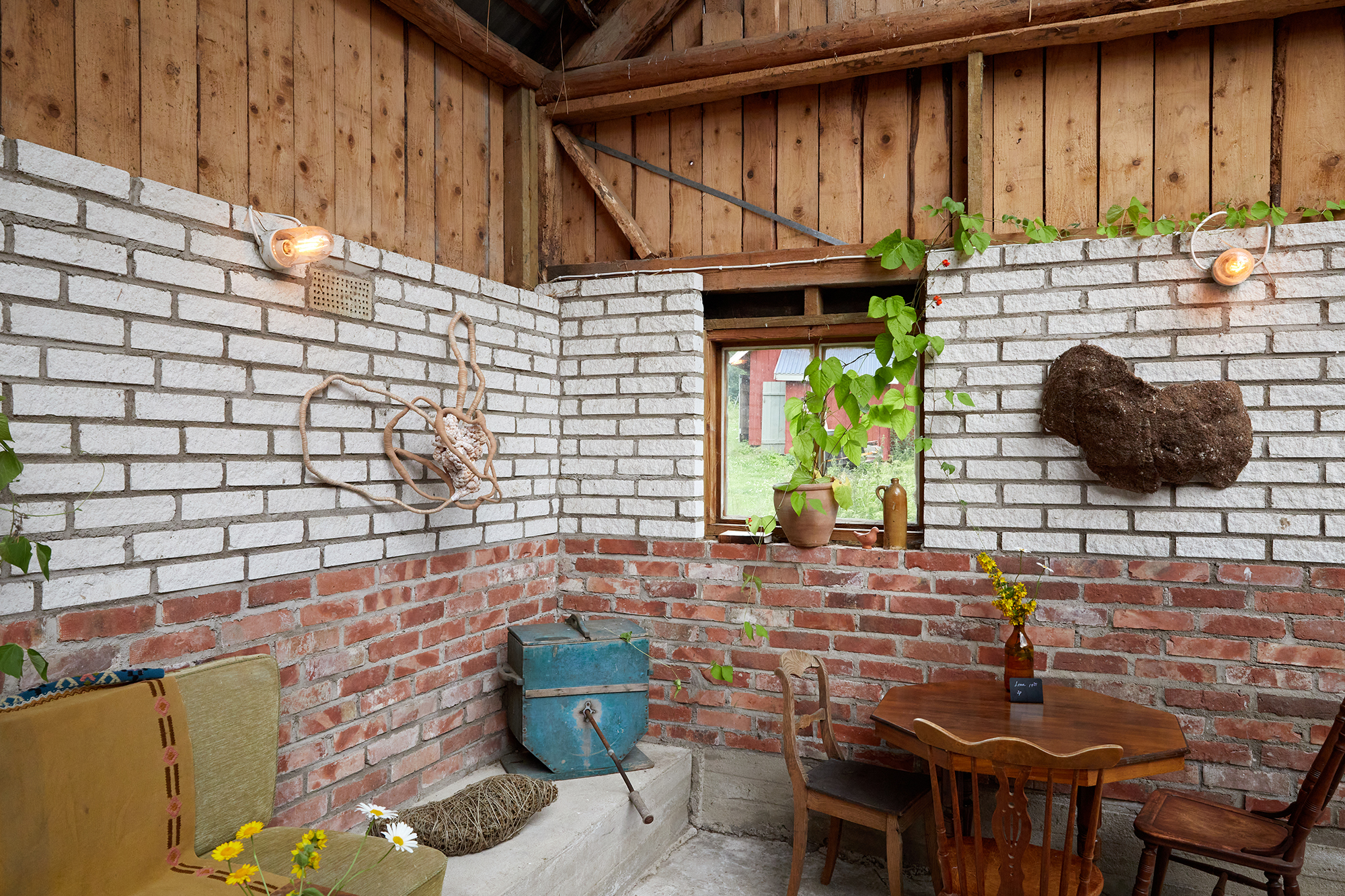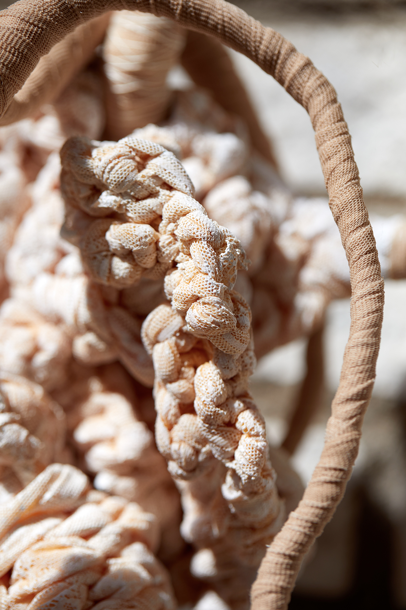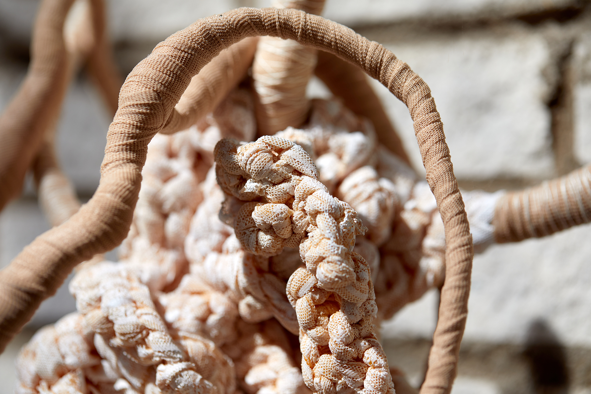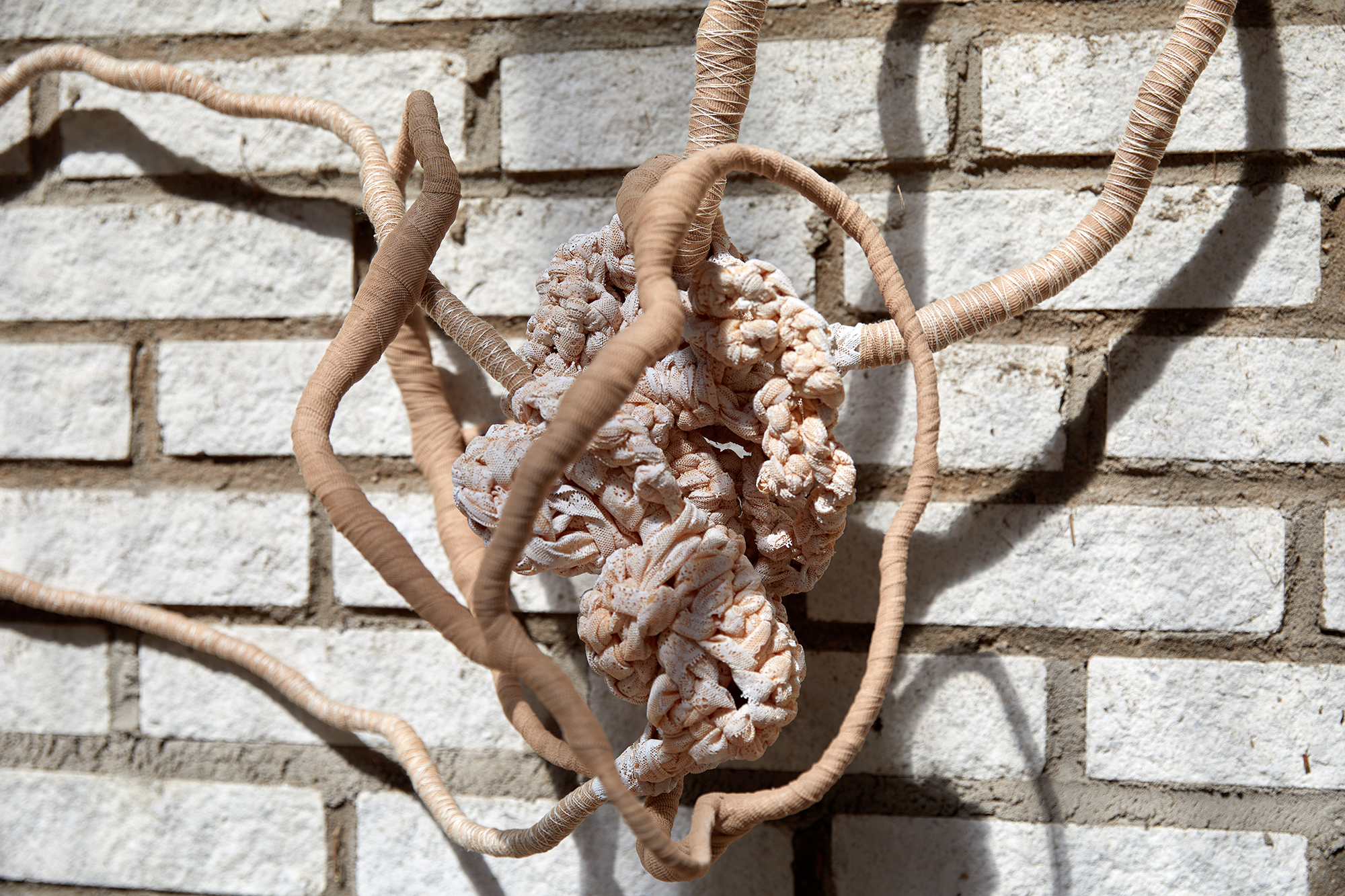 Material: Textil, ståltråd, plastband, färg, lintråd och spets.