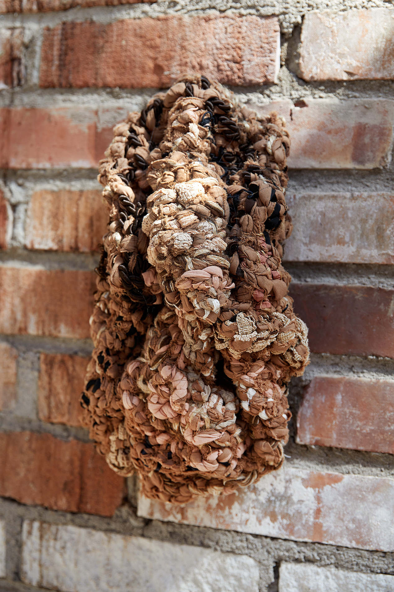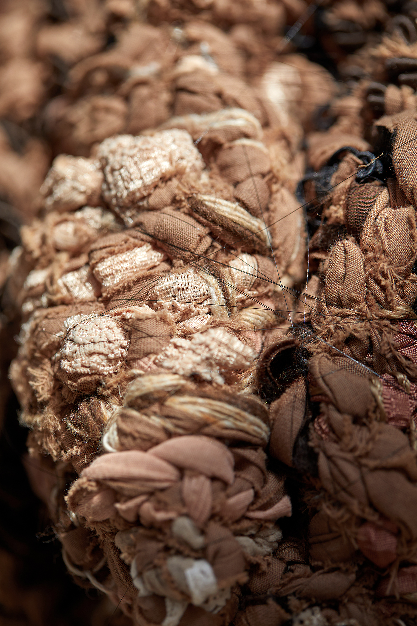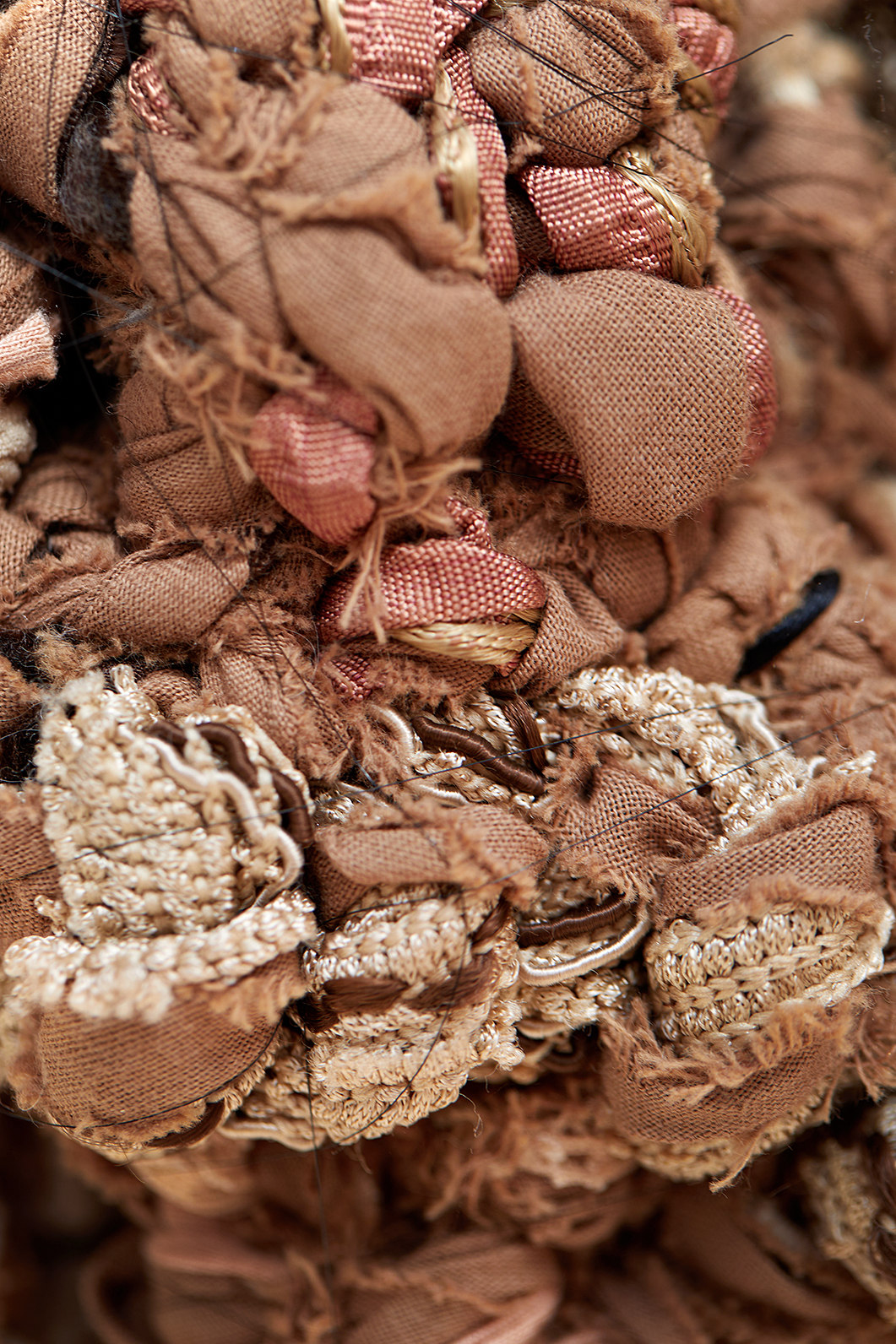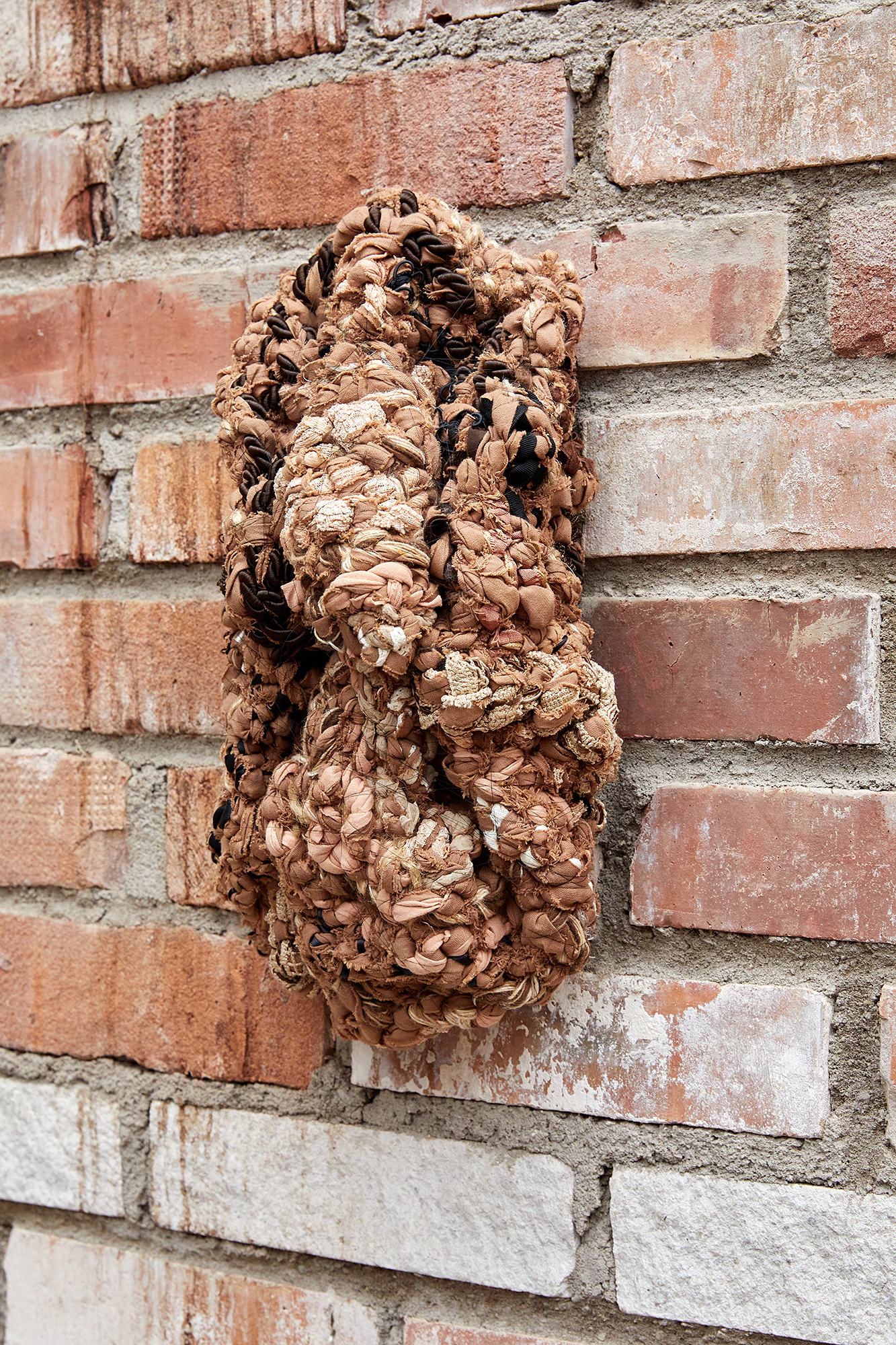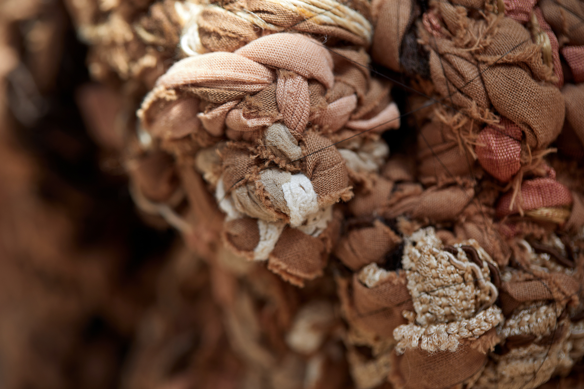 Försoning Titel: Försoning.Material: Textilier och syntettråd.Mått: Ca höjd 37, bredd 21, djup 16 cm.År: 2024.