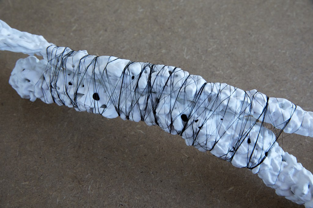 Material: Pappersraffia, färg och syntettråd.