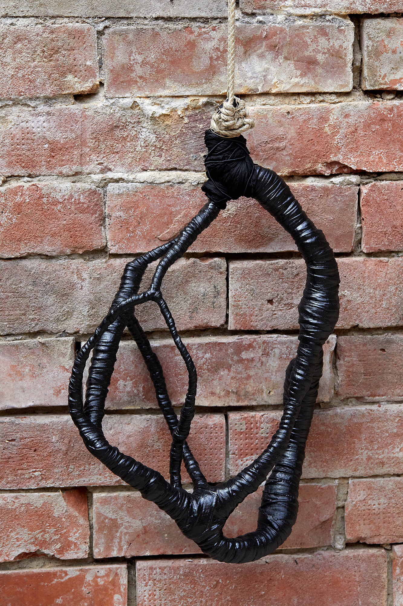 Material: Metall, gips, textil, färg, hampatråd och sidentyg.