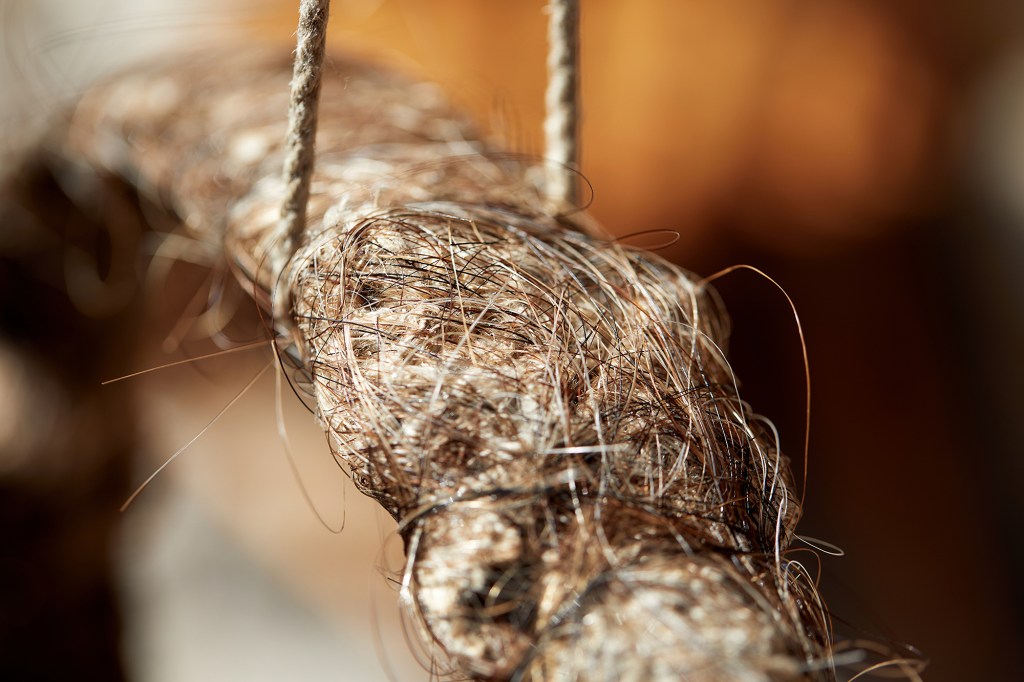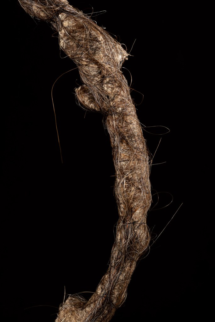 Material: Metall, hampatråd, lintråd, tagel och syntettråd.