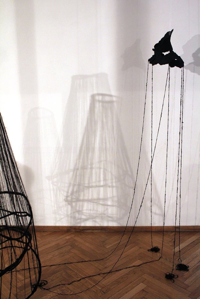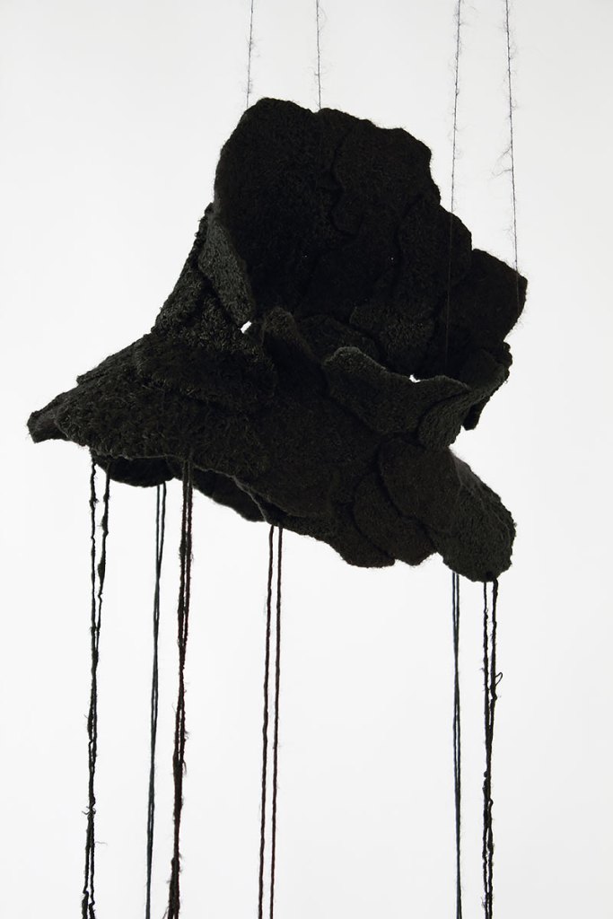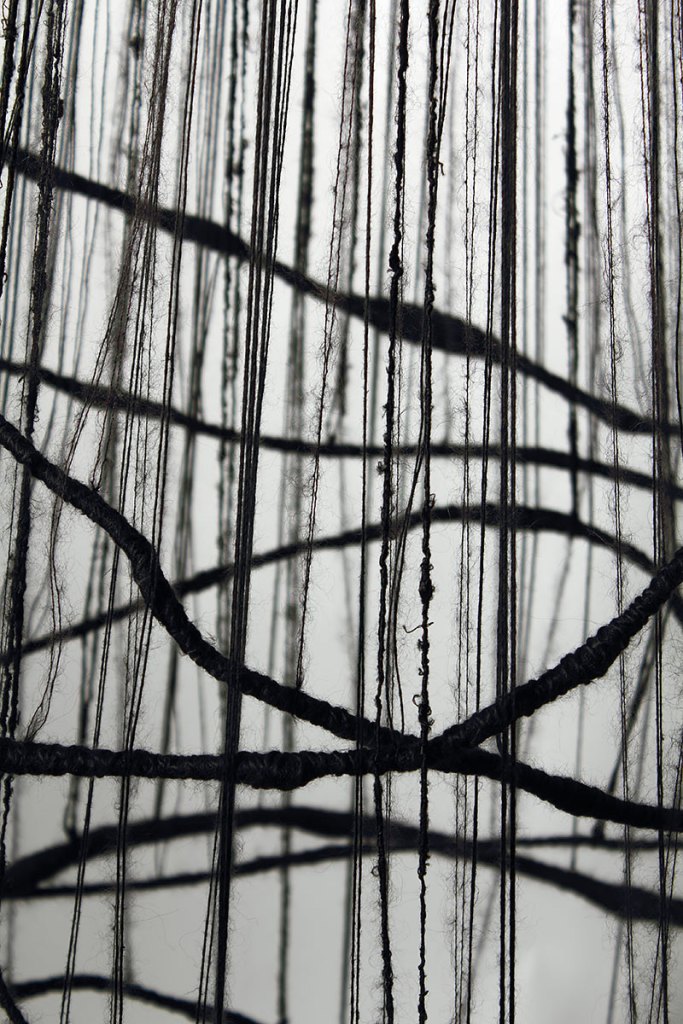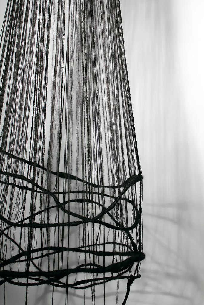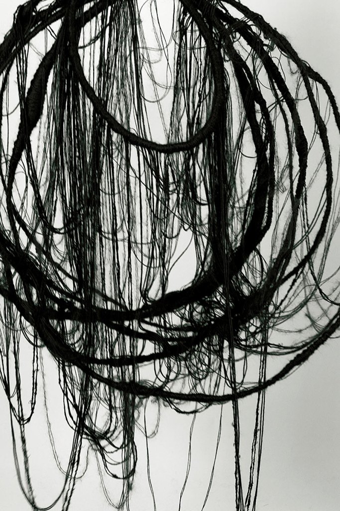 Material: Alpacka-, ull- och banangarn, lintråd, sidentråd, slangar, sytråd, syntettyg, ståltråd och gamla kläder.