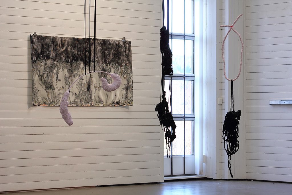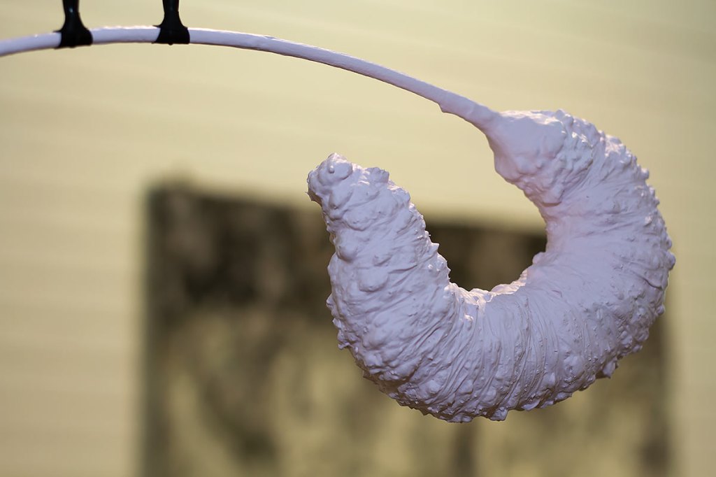 Material: Metall, lera, gips, färg, latex, resårband och trådar.