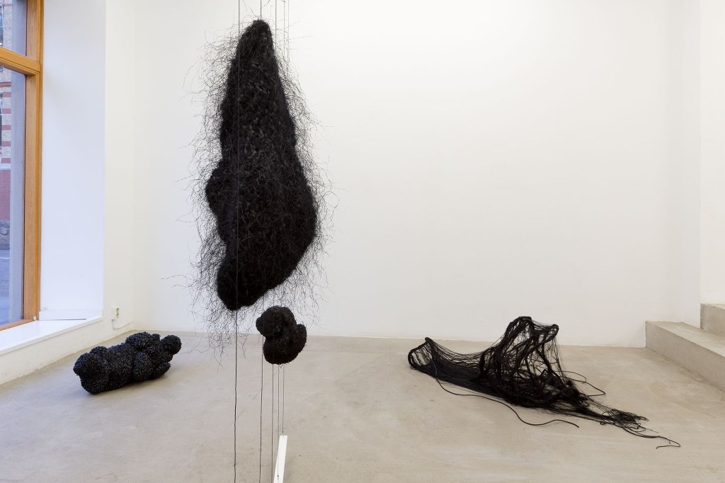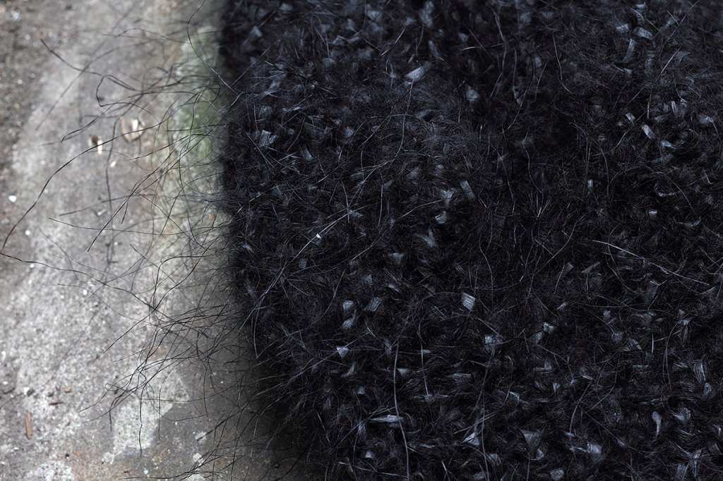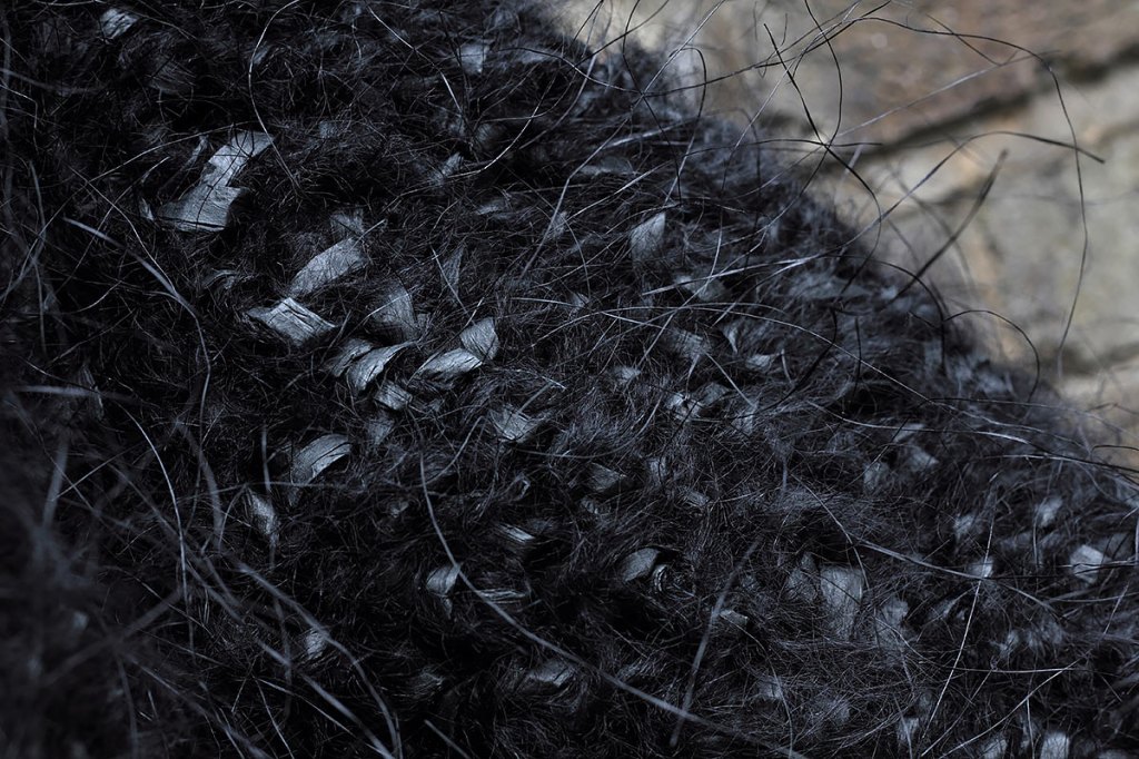 Material: Pappersraffia, mohairgarn, sisal, papperstråd, syntettråd och trä.