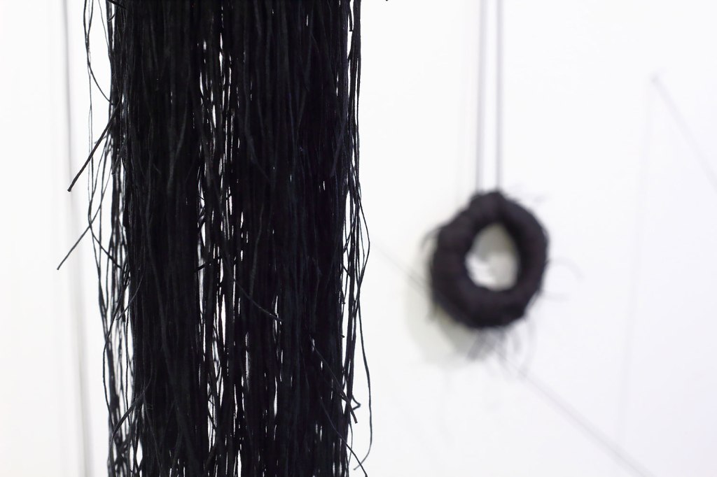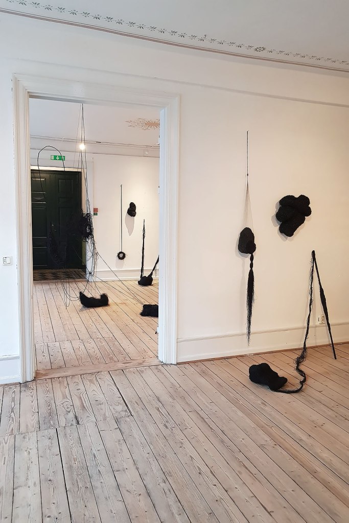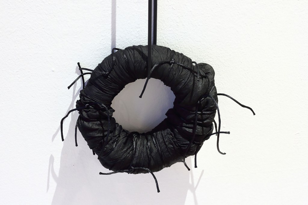 Material: Sidentyg, plastband, satinband och gummislang.