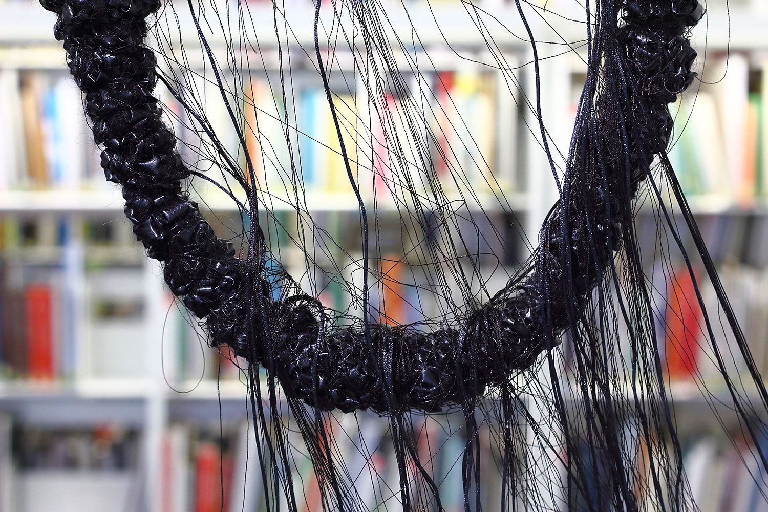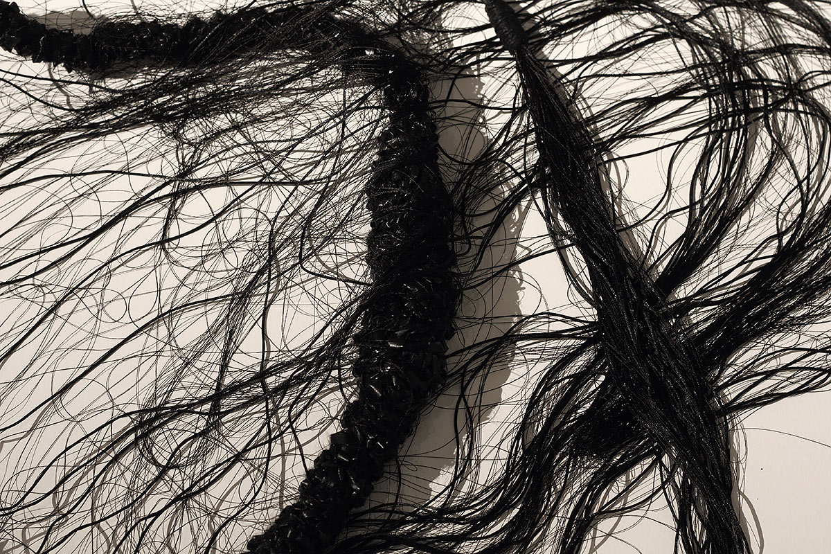 Minns du den dagen då du blundade Titel: Minns du den dagen då du blundade. Material: Trådar. Mått: Varierande mått. År: 2014.