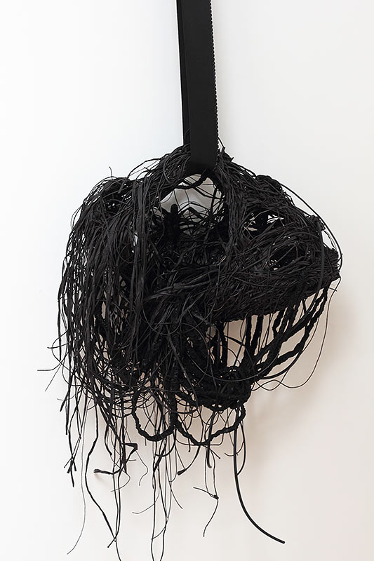 Material: Pappersraffia, papperstråd, satinband, resår, plastsnöre och gummislang.