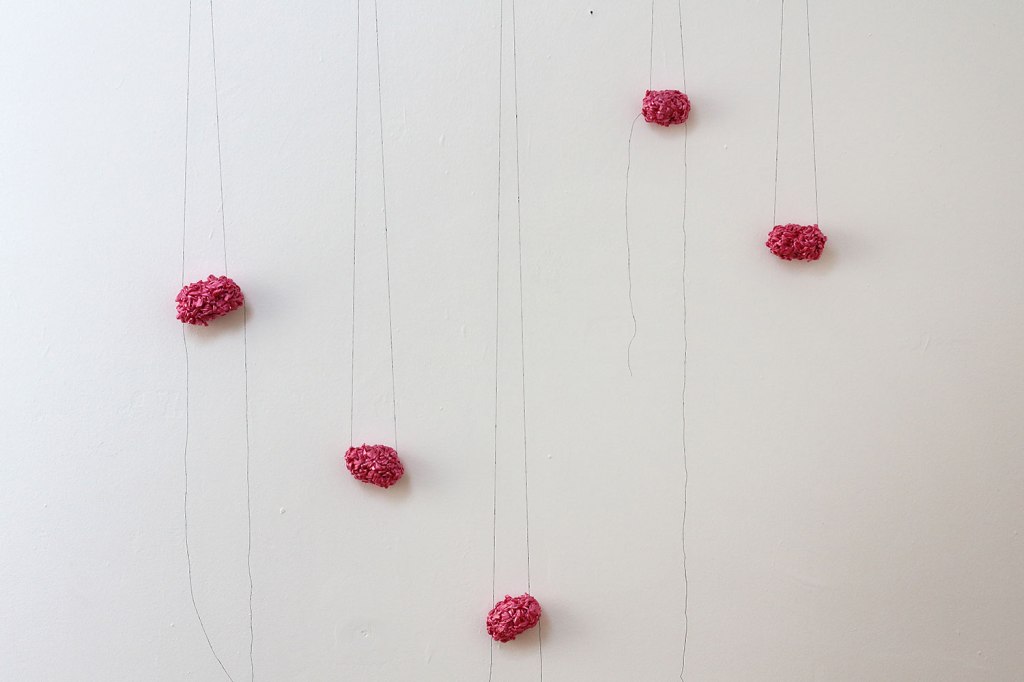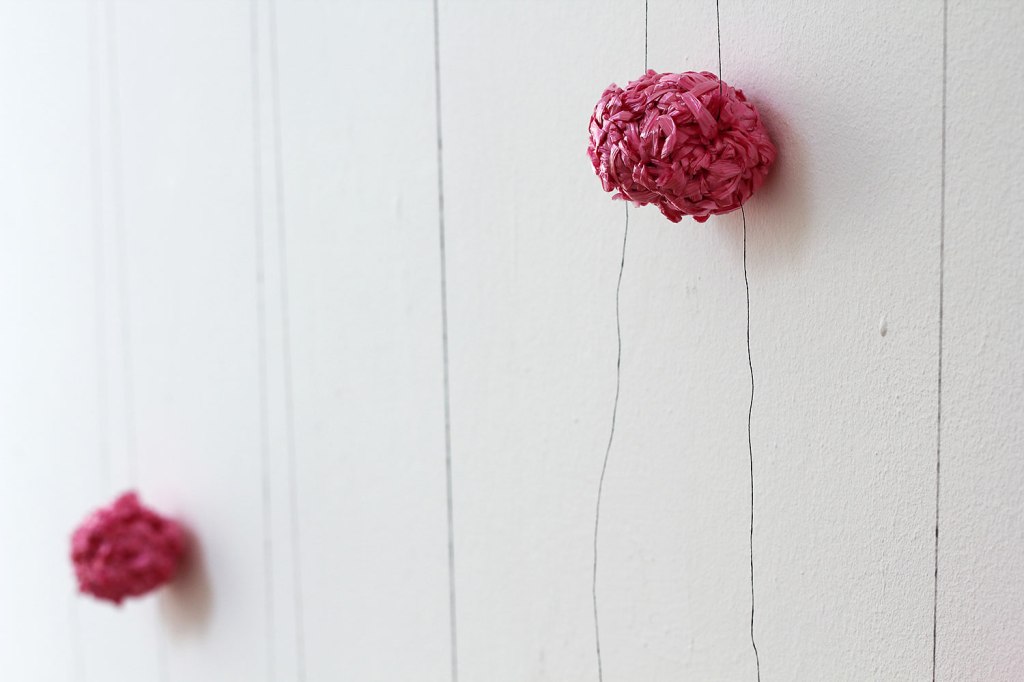 Närmar mig Titel: Närmar mig. (IIIII IIIII) Material: Band och papperstråd. Mått: Varierade mått. År: 2016.