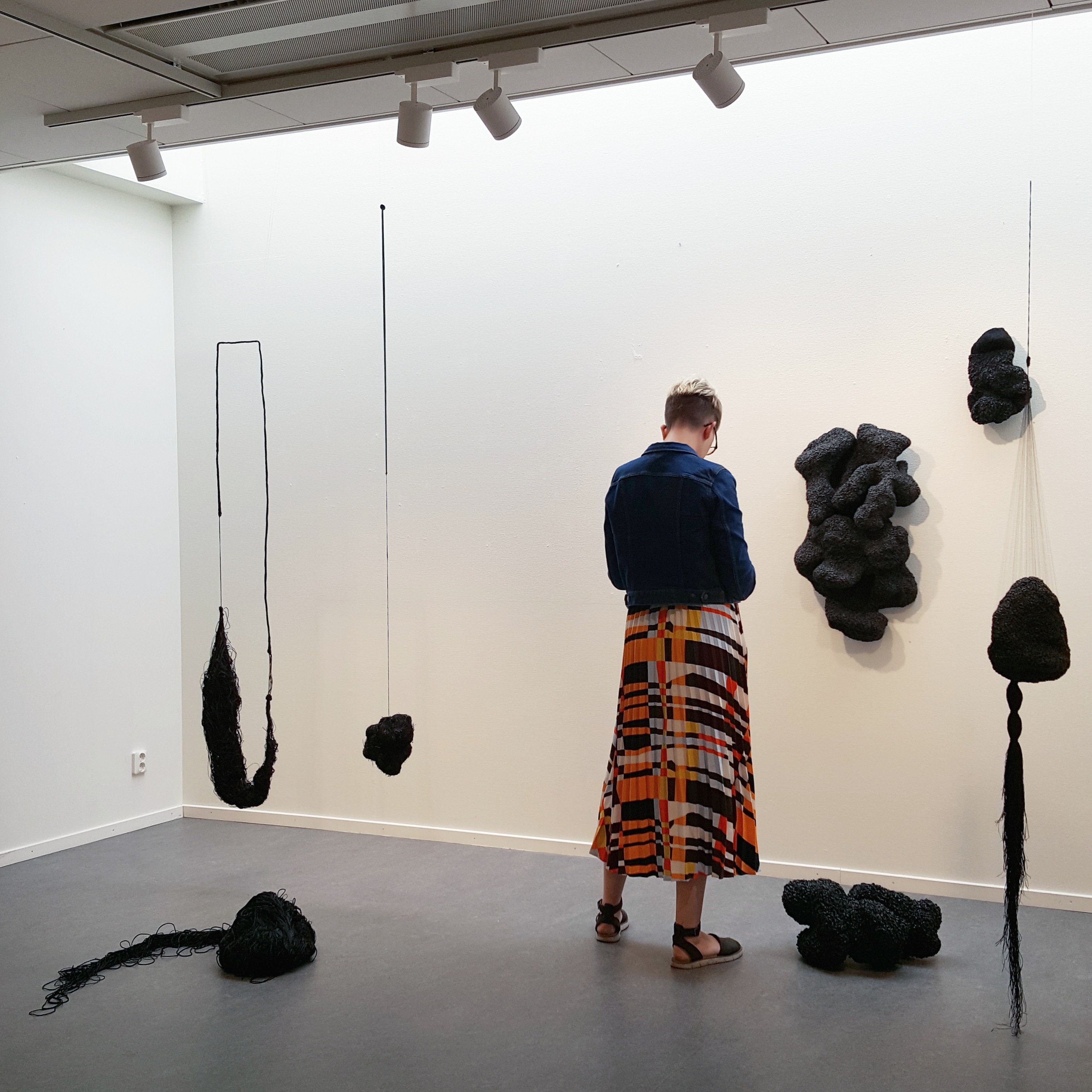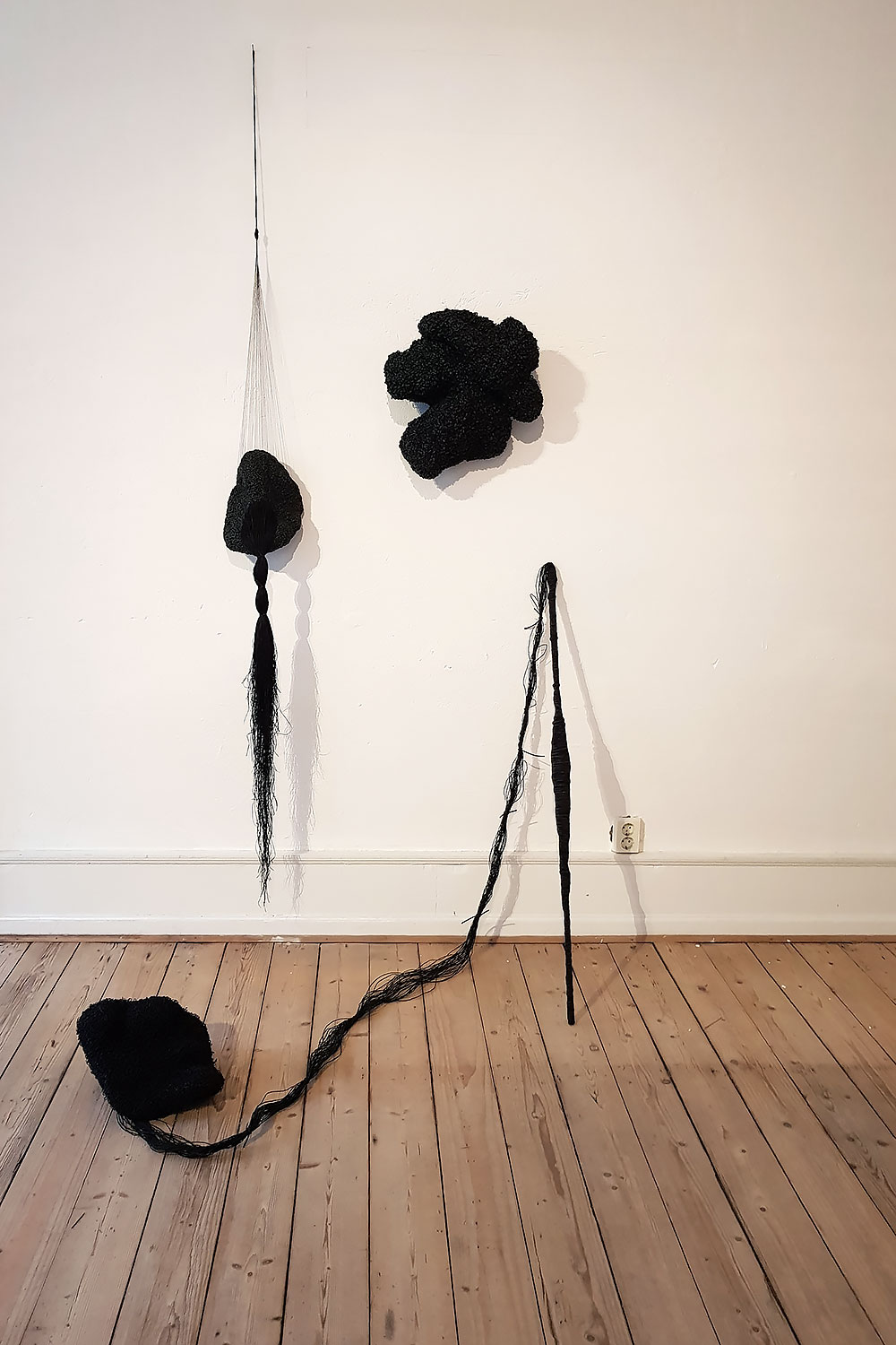 Material: Pappersraffia, mohairgarn, bomull-, syntet- och lintråd.