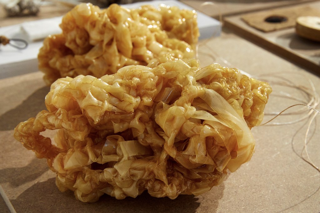 Material: Latex, tråd och lack.