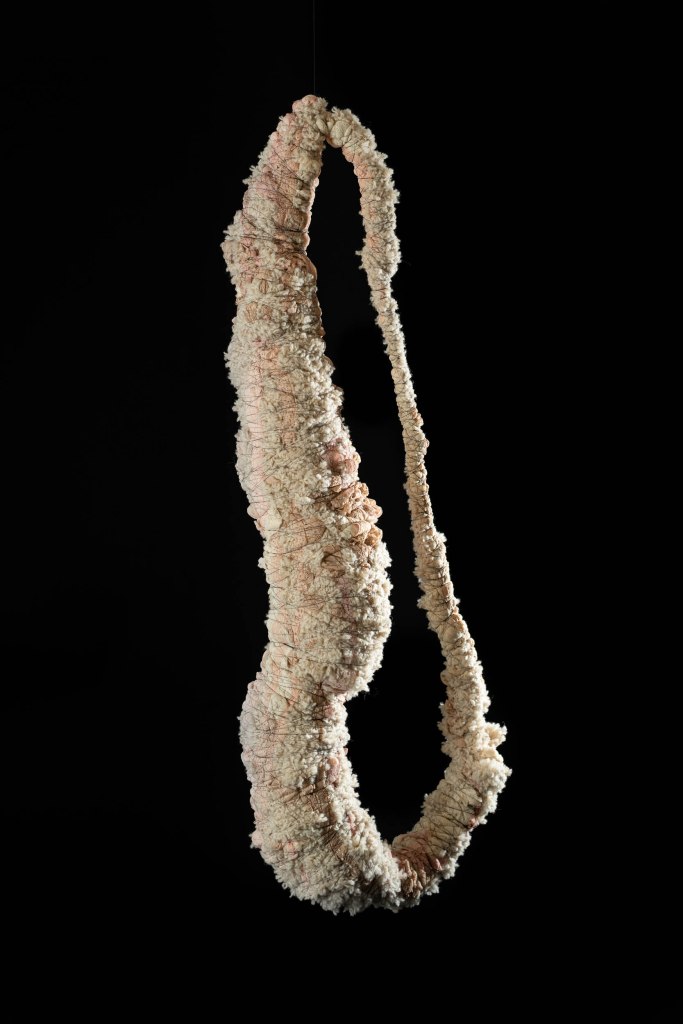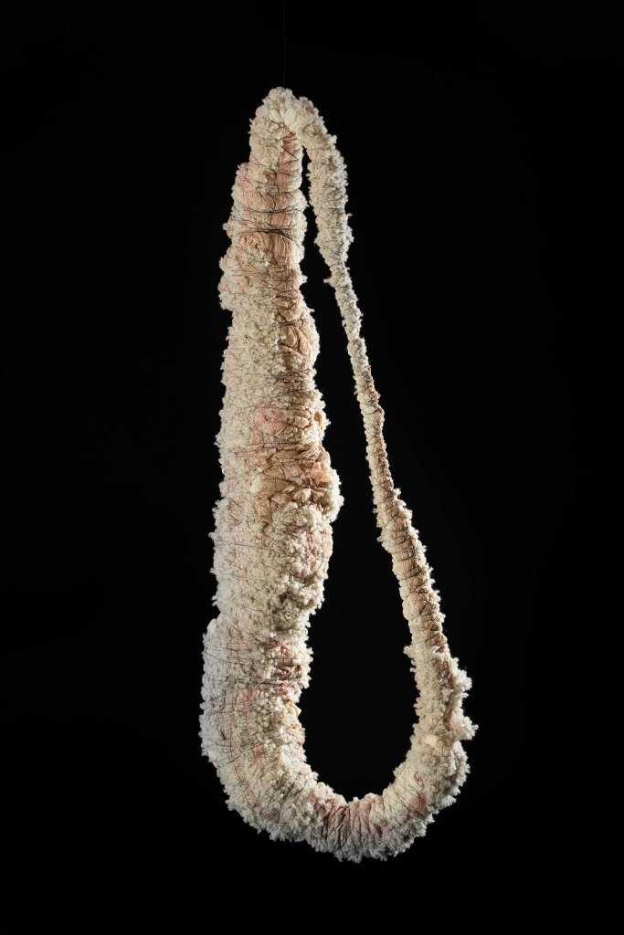 Material: Spets, textilier, ull och syntettråd.