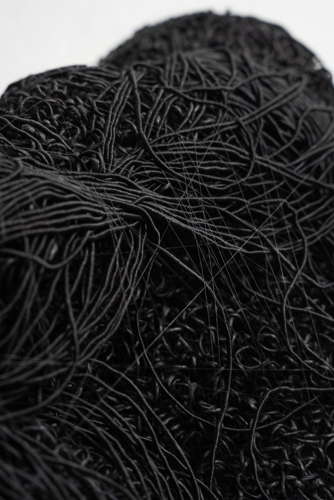 Material: Mohairgarn, papperstråd, syntettråd och satintråd.