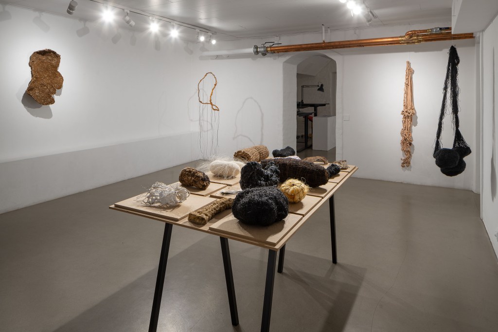 Material: Papperstråd, mohairgarn, sisal och syntettråd.