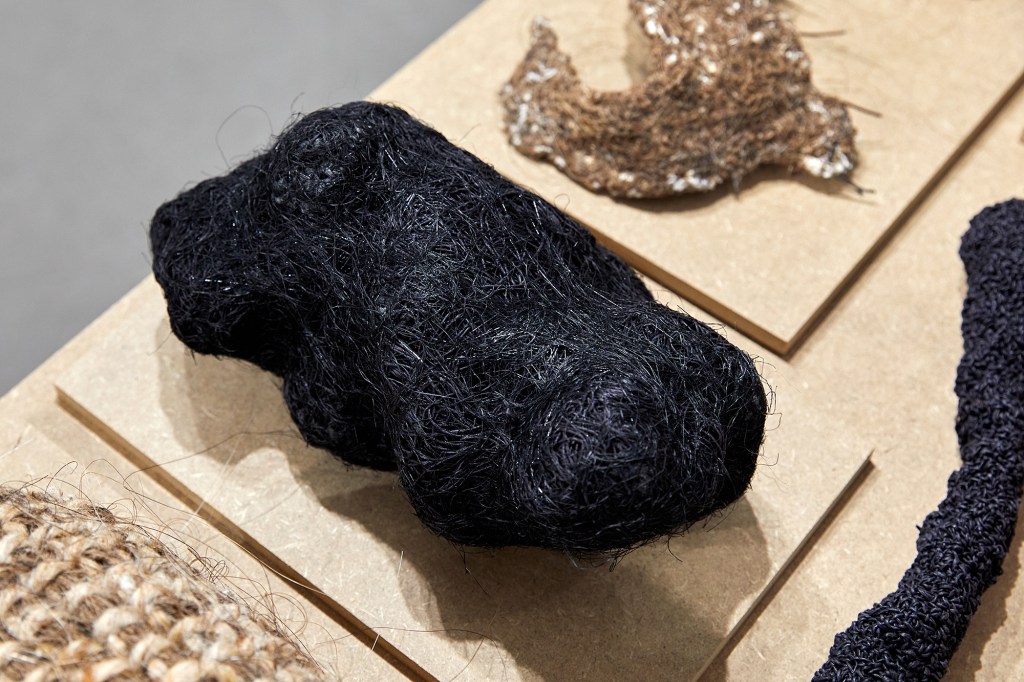 Material: Pappersraffia, mohairgarn, papperstråd och syntettråd.