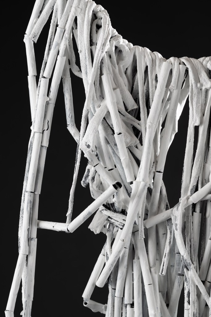 Skulpturen ”Vinge” ingår i det konstnärliga projektet ”Skyddsmantlar”. Projektet utgår ifrån två till synes helt skilda personliga berättelser som konvergerar runt konceptet skyddsmantel – ett upplevt överfall och misstanken kring egen autism. Processer som började för länge sedan var nu redo att bearbetas. Sammanfogningar, stygn och knutar bygger skulpturala verk. Redogörelsen är fragmentarisk – såsom verkligheten kan upplevas i en traumatiserad kropp – den handlar om bearbetning, konstnärlig process, händelsen som formade allt, läkning och om behovet av att sammanfoga saker till helheter.